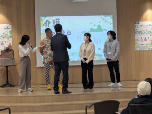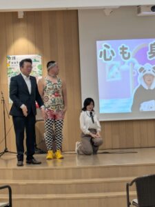 お笑いステージの後は、芸人さん×市内の施設で働く現役介護職員とのトークセッションを行いました。